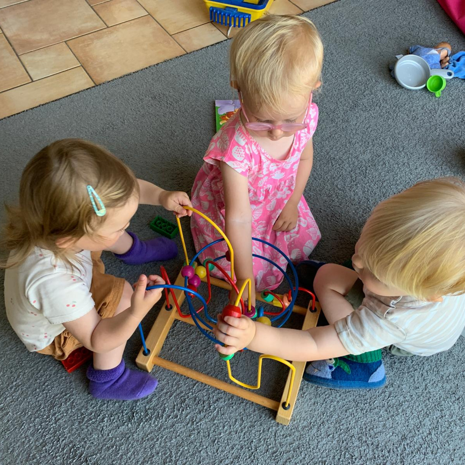 Die soziale Kompetenz der Kinder wird durch unsere Gruppe trainiert. Sie lernen Rücksicht auf die Wünsche Anderer zu nehmen und erproben spielend mit den eigenen und den Gefühlen anderer umzugehen. Die kleine Gruppe bietet einen schützenden Rahmen, in dem sich jedes Kind entwickeln kann. Hier lernen sie auch erste Freundschaften zu schließen, sich durchzusetzen, aber auch tolerant auf die Wünsche anderer Kinder zu reagieren. Es entsteht ein soziales Gefüge, in dem die Kinder Halt finden, intensive Beziehungen kennenlernen und mich als feste Bezugsperson akzeptieren bei der sie sich sicher und geborgen fühlen.